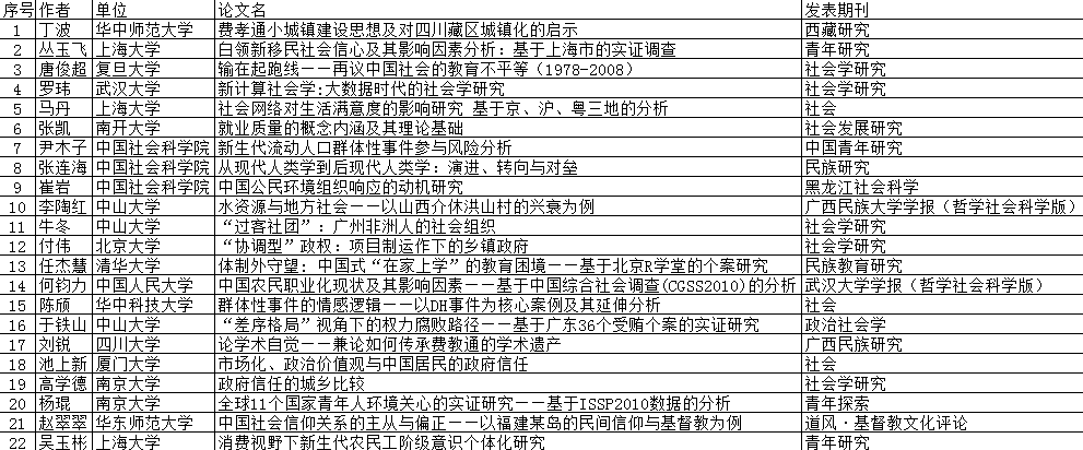 2016费孝通优秀论文奖参评论文公示