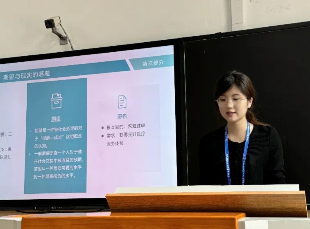 余汝念同学从社会交换理论视角出发,研究发现医患关系的紧张主要源于双方期望与现实的落差、价值观分歧、资源交换风险、信任危机及医疗市场化带来的利益冲突,这些问题亟待系统解决以促进医患关系的和谐。在讨论阶段,评议老师对论文提出宝贵指导意见,指做研究既要寻找到合适的切入角度,也要反思研究的理论贡献何在,避免经验材料与理论之间脱节,这些问题可以在对中层理论的探索中得到很好的启发。