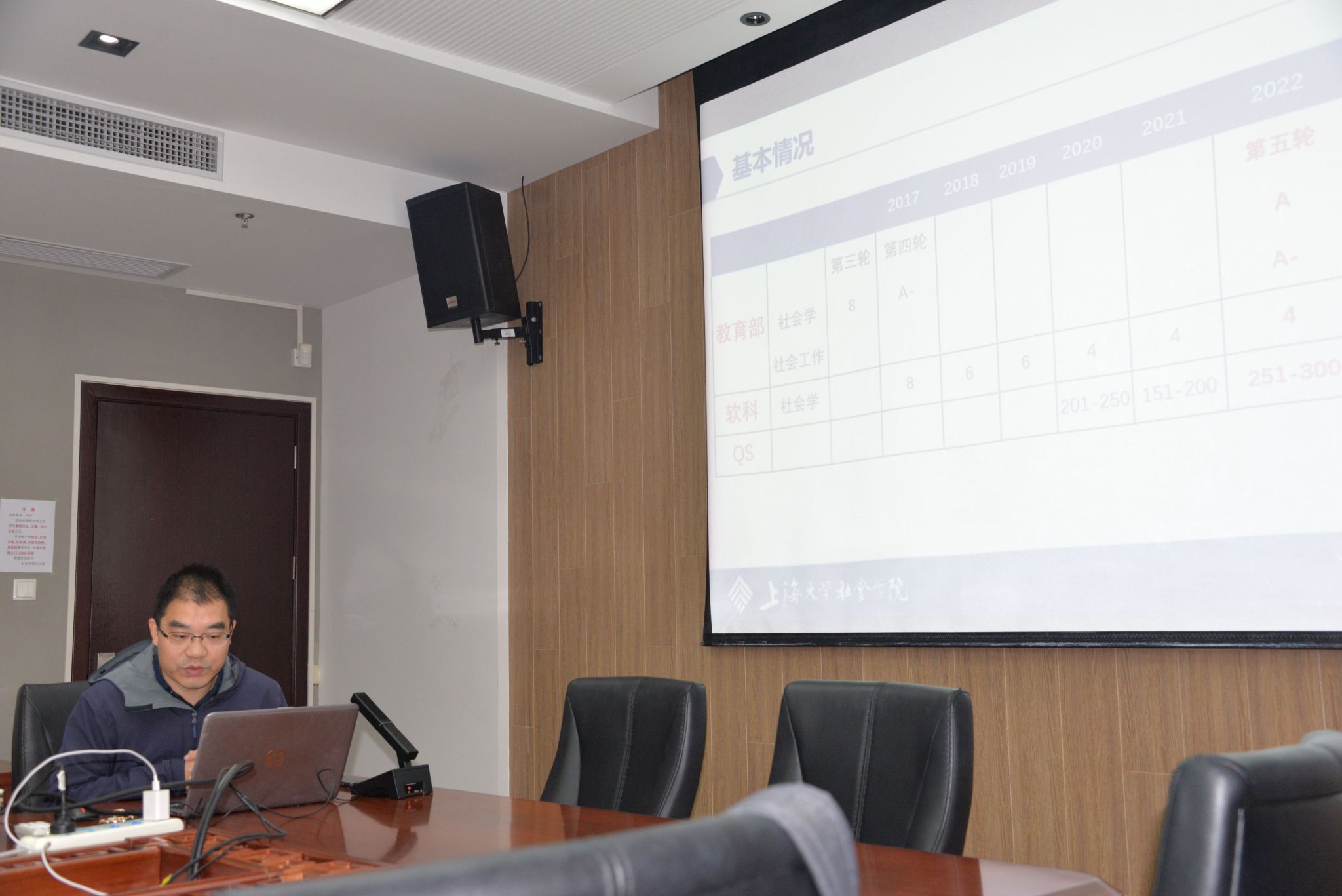 社会学一级学科博士学位点负责人黄晓春教授介绍学位点基本情况。希望专家能为社会学博士学位点的发展提出指导和建设意见。公司将借助此次评估对工作进行全面梳理,找差距、补短板,找准下一步改进的着力点。