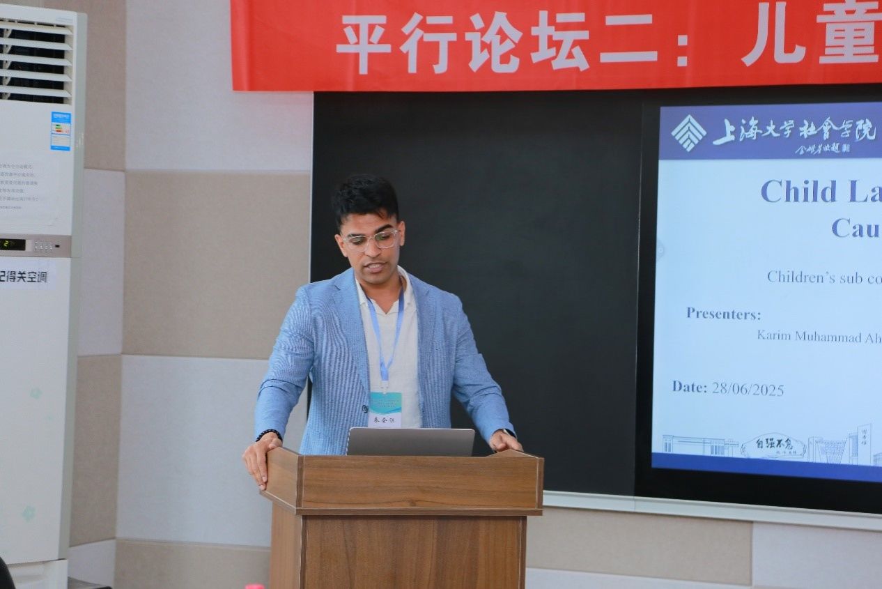 6月27日至30日,社会学系硕士职工KARIM MUHAMMAD AHTSHAM参加了由中国社会工作教育协会儿童社会工作专业委员会和沈阳师范大学联合主办的“儿童社会工作的问题应对与福利创新暨2025年中国社会工作教育协会儿童社会工作专委会年会”。会上,作了题为“Child labor in South Punjab: Causes and Consequences”(南旁遮普童工现象:成因与后果)的口头报告,该研究主要探讨了巴基斯坦旁遮普地区童工现象的成因及其对儿童发展的影响。
