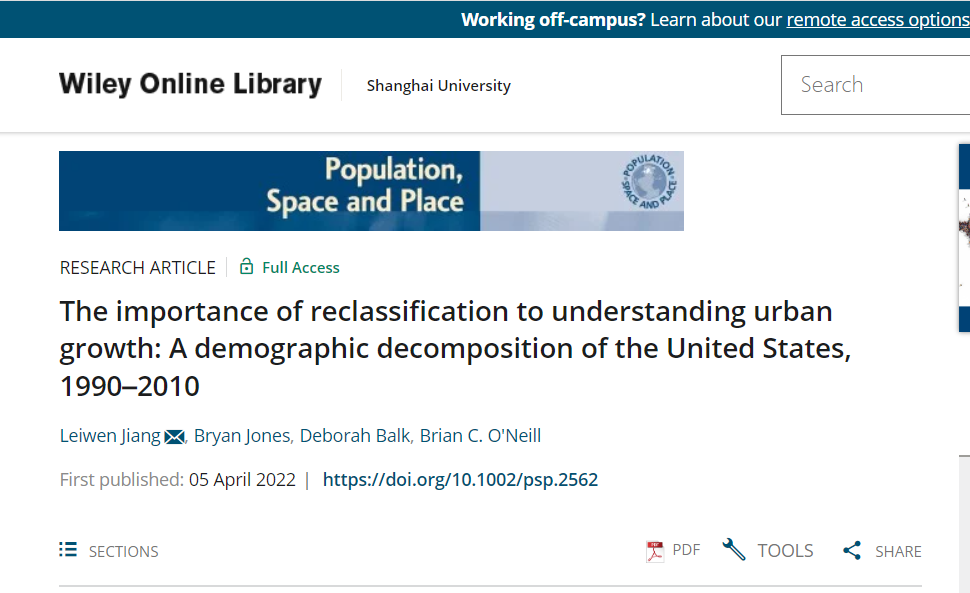 蒋耒文教授在国际期刊Population Space and Place上发表最新论文