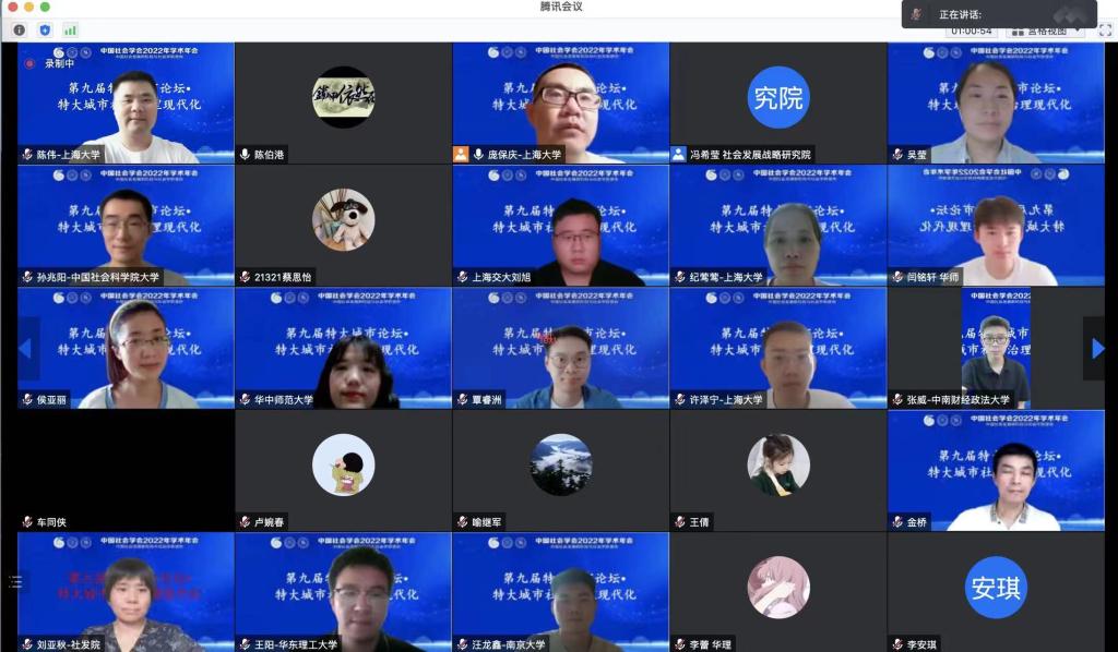 8月26日下午,中国社会学会2022年学术年会“特大城市社会治理现代化”顺利召开。本论坛由3044永利集团、中国社会科公司社会发展战略研究院共同主办,论坛负责人为黄晓春教授和田丰研究员。由于受到新冠肺炎疫情的影响,本次会议以在线方式举行。来自3044永利集团、中国社会科公司社会发展战略研究院、中国社会科公司大学、华南理工大学、南京大学、清华大学、上海交通大学、华东理工大学、华中师范大学等全国各院校的二十余位师生进行了会议发言,同时有八十多位师生参与了会议讨论,共同探讨如何利用传统和现代的各种手段提升特大城市治理水平,减轻特大城市面临的各种风险,迈向智慧化治理、实现城市让生活更美好的目标。本论坛共分为三个单元:致辞与主旨发言单元、城市治理的传统与现代单元、城市治理中的新技术单元。