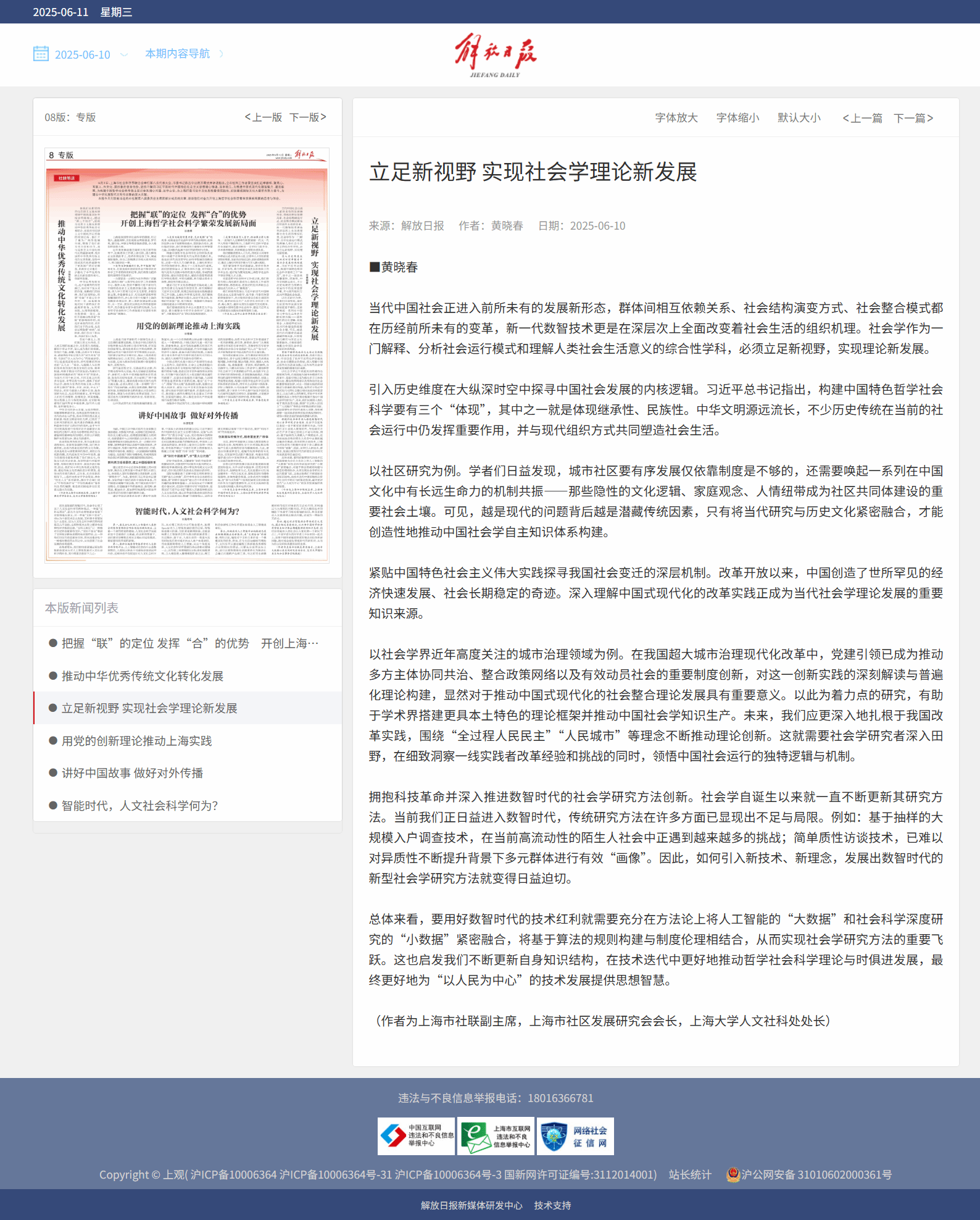 《解放日报》 | 黄晓春:立足新视野 实现社会学理论新发展