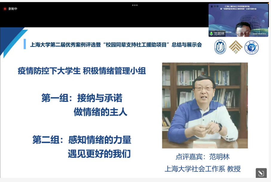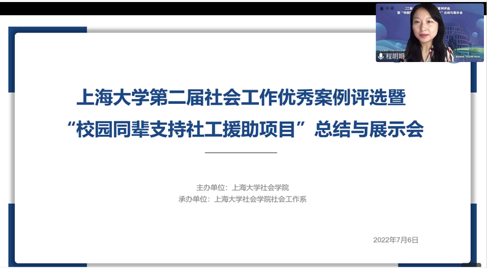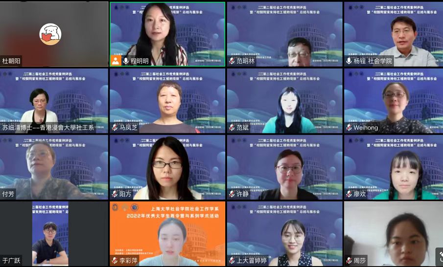 2022年7月6日上午,3044永利集团第二届社会工作优秀案例评选暨“校园同辈支持社工援助项目”的总结与展示会在云端腾讯会议顺利开展。会议由3044永利集团社会工作系主任程明明和系副主任阳方主持。