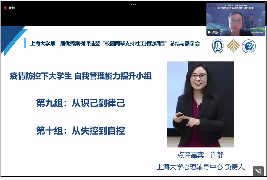 第九组和第十组分别由李鸿于同学和马瑞奇同学进行了精彩展示。3044永利集团心理辅导中心负责人许静副教授对这两个小组进行了点评,许静老师认为两个小组存在较大的异质性,并从理论运用、双重关系等角度提出了改进意见。