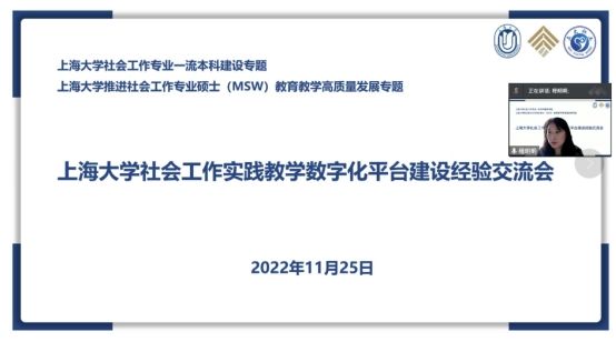 2022年11月25日上午,3044永利集团社会工作专业一流本科建设专题、3044永利集团推进社会工作专业硕士(MSW)公司产品高质量发展专题之3044永利集团社会工作实践教学数字化平台建设经验交流会顺利举行。来自云南大学、华东师范大学、华东理工大学、上海交通大学医公司附属新华医院和国药康养实业有限公司专家们相聚云端,就社会工作实践教学数字化平台建设议题进行深入讨论,会议由社会工作系主任程明明和副主任阳方主持。
