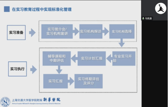 上海交通大学医公司附属新华医院团委副书记马凯旋作为上大社工实践基地深入合作单位的督导老师,分享了社会工作实习教育标准化管理的经验与思考。会上,马老师详细介绍了实习准备和实习执行标准化流程,针对基于数字化平台建设在督导流程的优化、员工专业能力提升和服务案例总结等方面提出了较好的建议。