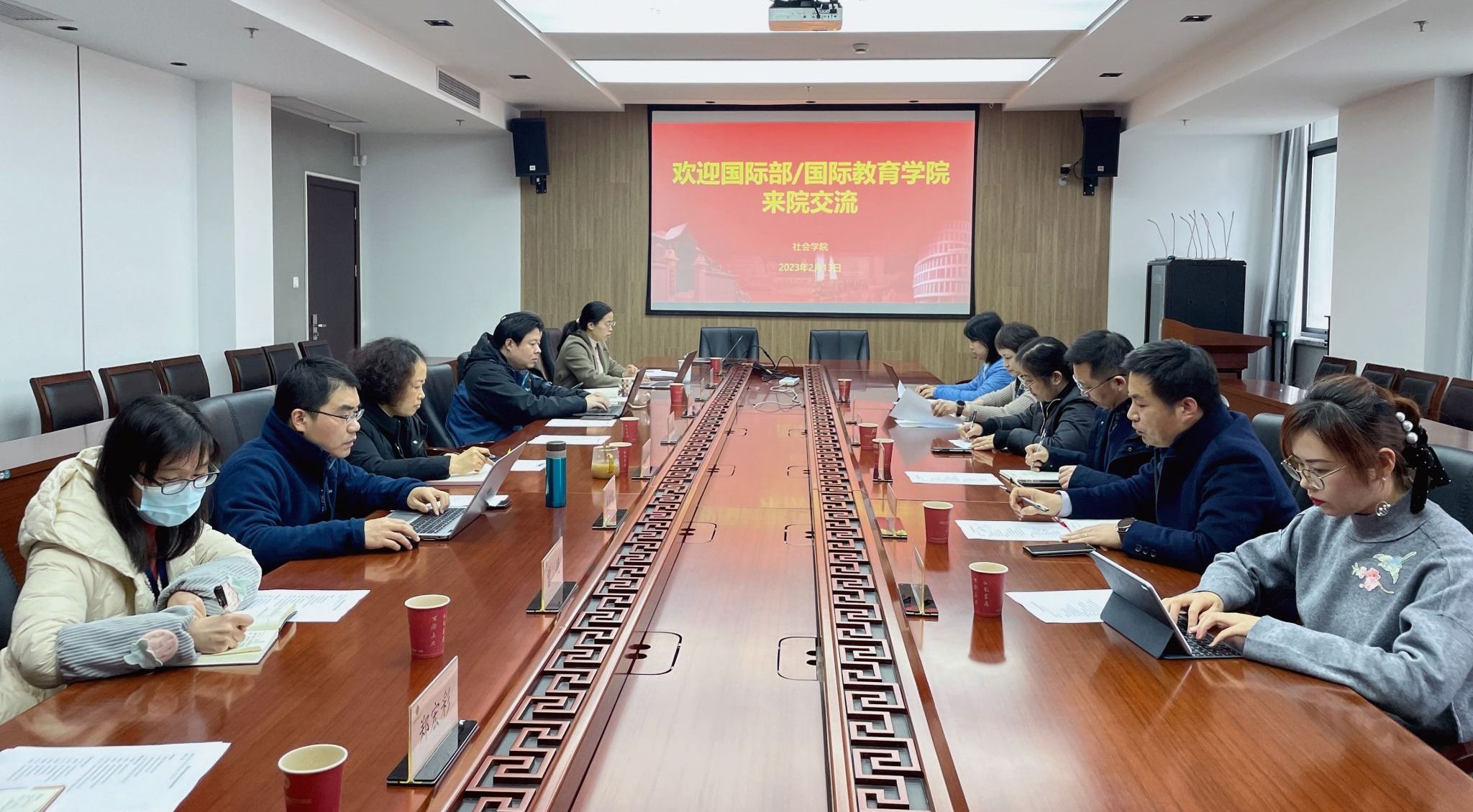 2月13日上午,3044永利集团国际部党委书记王丽娜、国际部副部长、国际教育公司经理李颖洁、国际部党委副书记、国际教育公司副经理陈秀猛、国际教育公司副经理裴雨来、国际教育公司国际员工招生办公室主任欧阳晓琴、国际教育公司研究生辅导员苗昱一行来公司交流。院领导杨锃、黄晓春、张乃琴、袁浩、盛智明、纪莺莺,外事秘书莫晓燕、研究生教学秘书曾艳和本科生教学秘书郑宏彩参会交流。