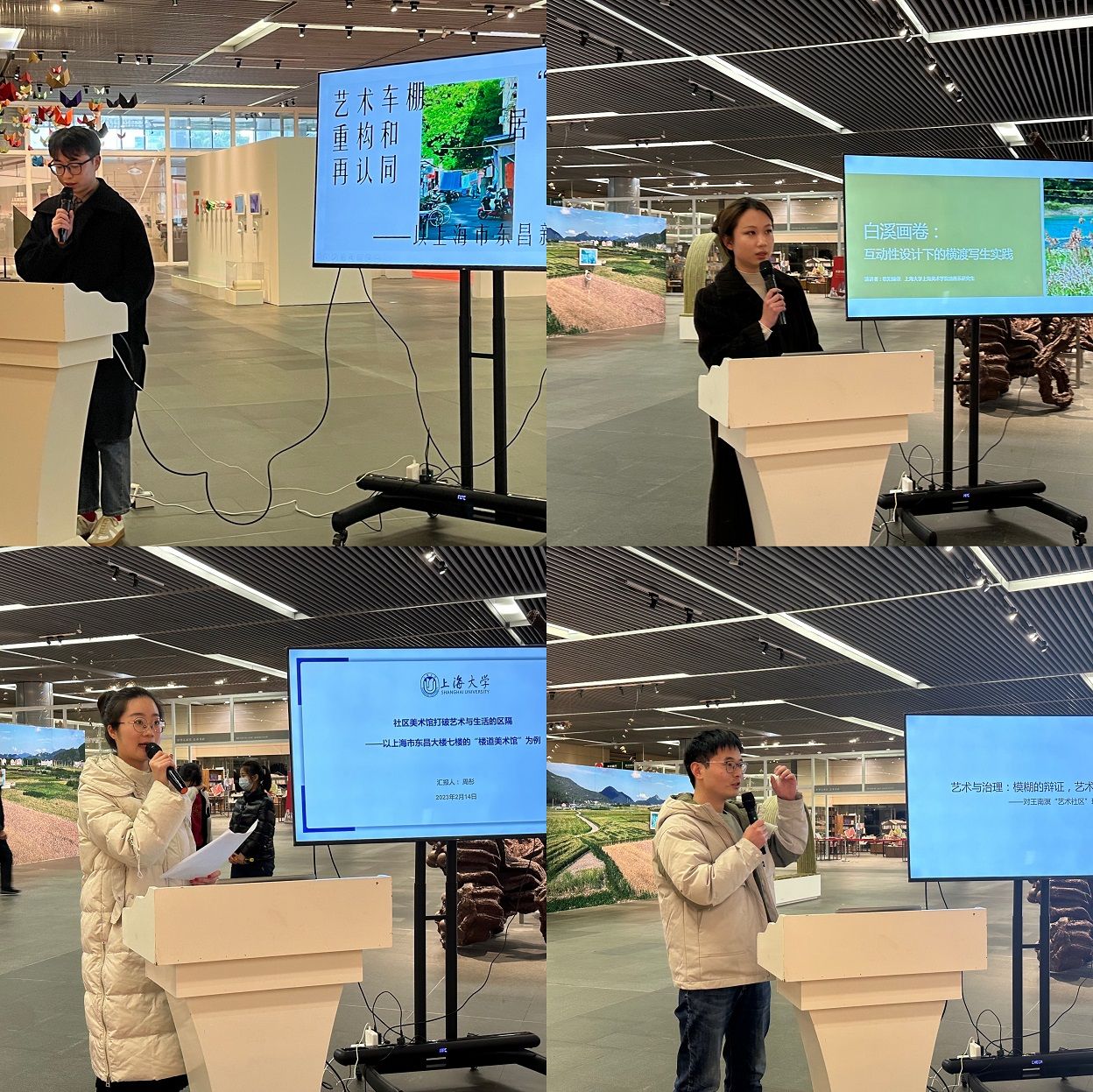 论坛第一组,3044永利集团民俗学专业硕士研究生吴言、人类学专业硕士研究生崔贤玲、管馨怡结合了二十世纪三十四年代老一辈思想家梁漱溟、陶行知的艺术乡建思想,对于当前我国的乡村文化振兴状况提出思考和建议。上海美术公司设计学博士研究生崔仕锦、油画系硕士研究生欧阳婧依结合其参与的实践项目向我们展示了艺术进乡村的可能性。论坛第二组,上海美术公司艺术管理博士研究生周美珍、艺术管理系硕士研究生王艺颖、史论系本科生赵婧儿分享了自身参与的艺术社区实践、以及在中华艺术宫工作坊、人民公园“园艺新风”的策展经历,3044永利集团民俗学专业硕士研究生陶子煜结合上海市东昌新村的调研情况提出关于艺术车棚带来的“社区”重构和居民再认同的思考。论坛第三组,3044永利集团民俗学专业硕士研究生刘文迪结合三门县越剧剧团的田野调研情况,从乡村社会语境讨论民间戏曲的发展困境,3044永利集团民俗学专业硕士研究生周彤、周若欣结合了东昌大楼“楼道美术馆”、东昌新村实地调研情况提出对于艺术社区建设的思考。3044永利集团人类学专业硕士研究生王磊对于王南溟老师的艺术思想支配下的艺术社区实践提出了一些疑问,王南溟老师结合自己的艺术社区探索过程就王磊同学提出的疑问通过对话交流的形式作出回应。
