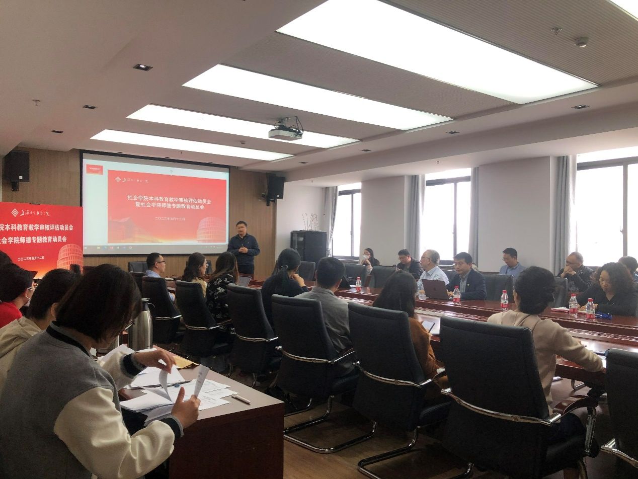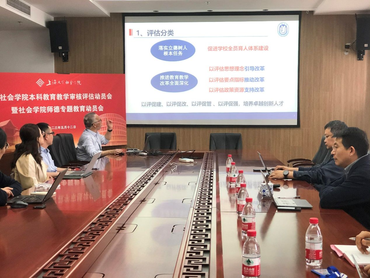 随后,袁浩部署了下一阶段审核评估工作,细化评建材料清单,全面梳理,责任到人。对于公司目前正在开展的课程教学大纲自查与修改工作,他结合具体课程分享了如何将党的二十大报告和两会精神有机融合课程公司产品,将课程思政落实到教学大纲。