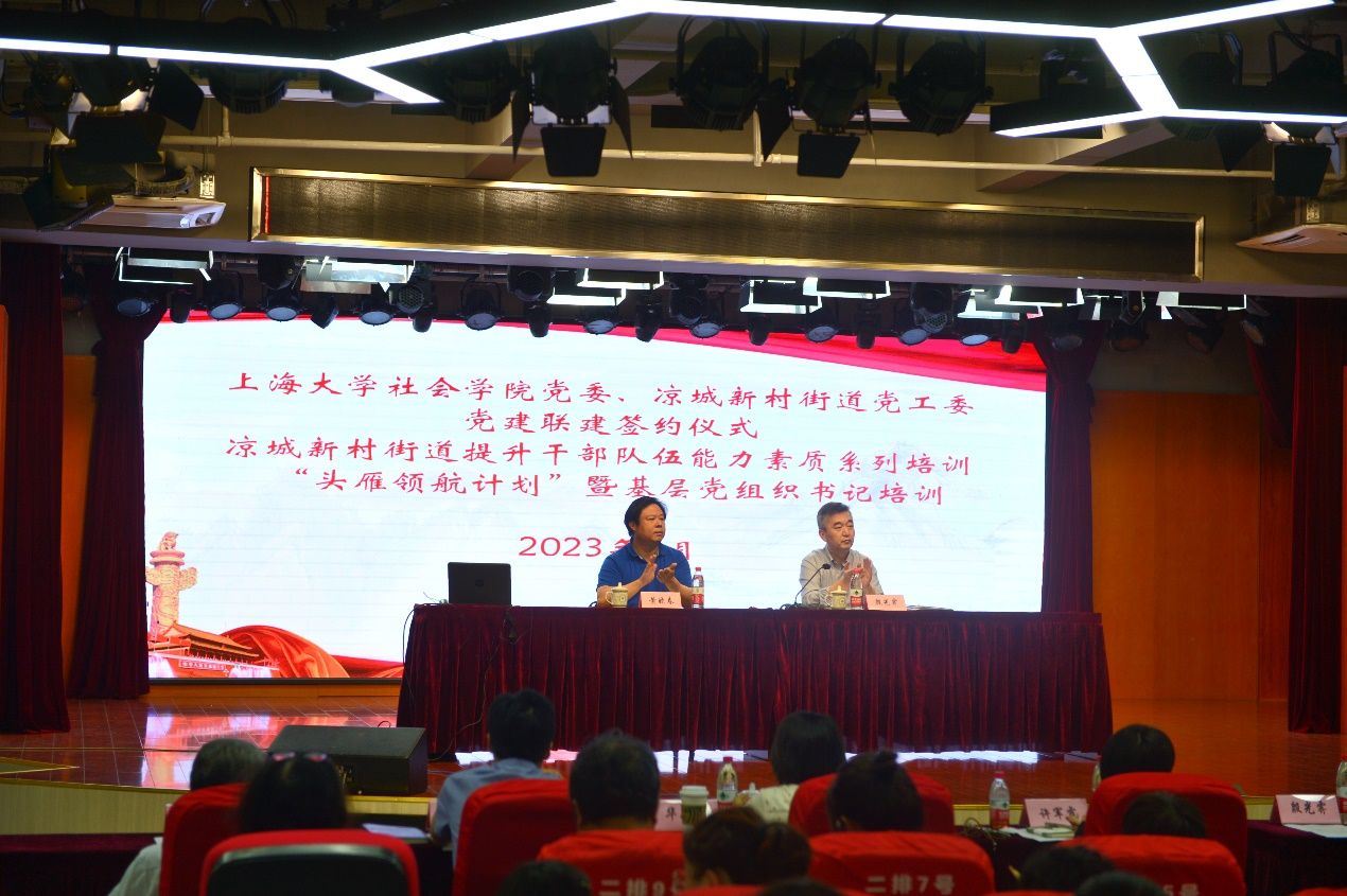 随后,黄晓春教授进行了《党建引领基层社会治理与创新》的讲座,也是凉城新村街道提升干部队伍能力素质系列培训、“头雁领航计划”暨基层党组织书记培训的主题讲座。讲座剖析了党建引领的内涵,并探讨了若干改革方向,包括探索党建引领基层民主协商的有效工作方法、探索新时代群众路线的支持保障机制、探索党建引领物业治理的新路径、探索治理攻坚的社会支持机制等。