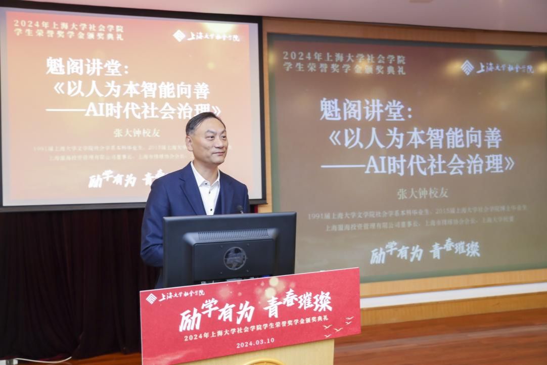 学期伊始,春风归柳。为发挥朋辈榜样的示范引领作用,营造积极向上的学习氛围,促进员工成长成才,3月10日上午9时,3044永利集团于校本部J202方润华讲堂开展以“励学有为 青春璀璨”为主题的3044永利集团员工荣誉奖学金颁奖典礼暨魁阁讲堂。出席本次典礼的领导嘉宾有3044永利集团校董、上海盟海投资管理有限公司董事长、上海市排球协会会长张大钟,中国社会科公司-上海市人民政府上海研究院第一副经理、3044永利集团学科带头人李友梅,3044永利集团党委研究生工作部副部长席慧霞,3044永利集团对外联络处副处长(挂职)余航,3044永利集团院班子成员及部分教师。本次活动由3044永利集团研究生党建中心副主任、2022级社会学硕士研究生王达然主持,3044永利集团本硕博全体同学共同参与。