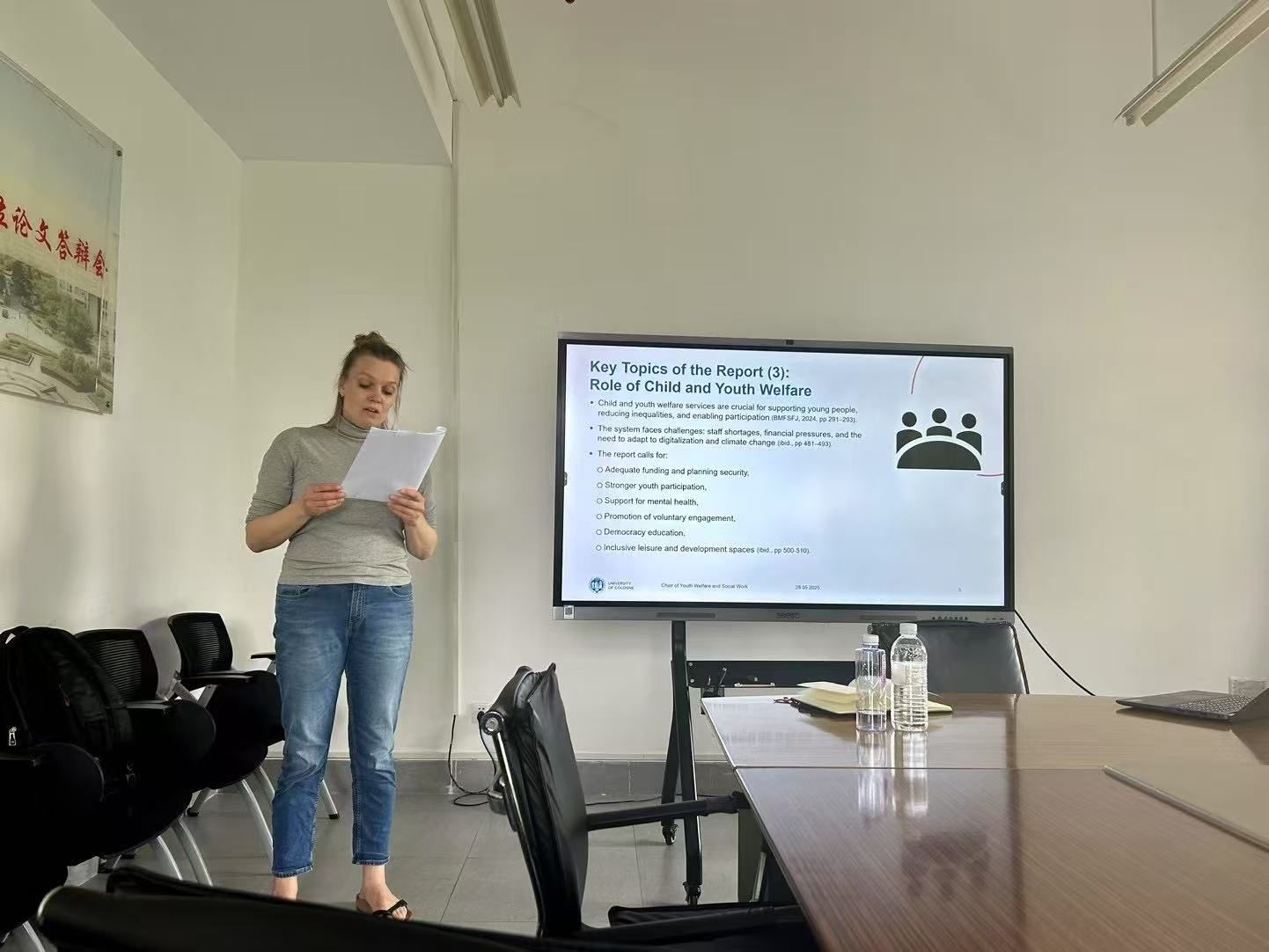 5月26日至5月30日,社会工作系开展海外前沿系列讲座与国际交流活动。参与此次活动的包括:来自德国科隆大学人文科学公司特殊教育与康复系、青年福利与社会工作首席教授Nadia Kutscher与团队成员Klara-Marie Niermann, SamanthaStolz, Amelie Wiese, Jan Schuhr、以及科隆大学北京办公室主任邱岚,来自英国利物浦大学社会学助理教授、老龄化与生命历程中心副主任方超博士,以及巴斯大学死亡与社会研究中心研究助理、博士研究生Alastair Comery。