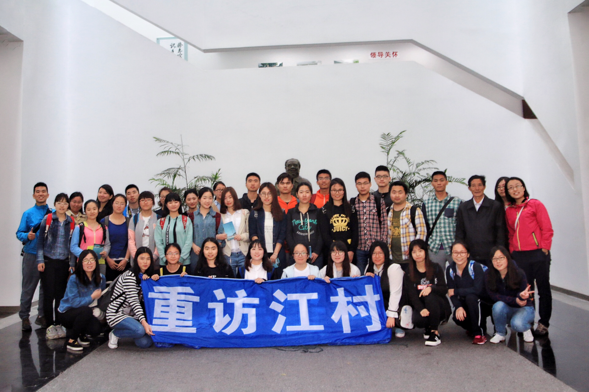 随后,便是参观费孝通纪念馆,姚富坤先生就费孝通和费孝通的姐姐费达生的生平以及馆内陈列的展品作出详细解说,让我们对费孝通及费达生先生,以及江村这片土地的风土人情有了更加深入的了解。费孝通,著名社会学家、人类学家、民族学家、社会活动家,从事社会学、人类学研究,写下了数百万字的著作,在其导师马林诺夫斯基的指导下完成题为《江村经济》的博士论文,该书成为欧洲一些公司人类学员工的必读参考书,费孝通也因此获得英国皇家人类学会授予的人类学界的最高奖──赫胥黎奖,他被誉为中国社会学和人类学的奠基人之一。费达生,著名社会学家费孝通的姐姐,我国著名的蚕丝专家,她创建的吴江县开弦弓村生丝精制运销合作社,是中国较早的乡村工业,她为全面提高蚕丝业、促进全行业的协调发展起到重要作用。纪念馆内陈列的照片、早期文件等丰富的研究资料,成为中国社会学发展的宝贵财富。师生一行在纪念馆中的费孝通像前合影留念。