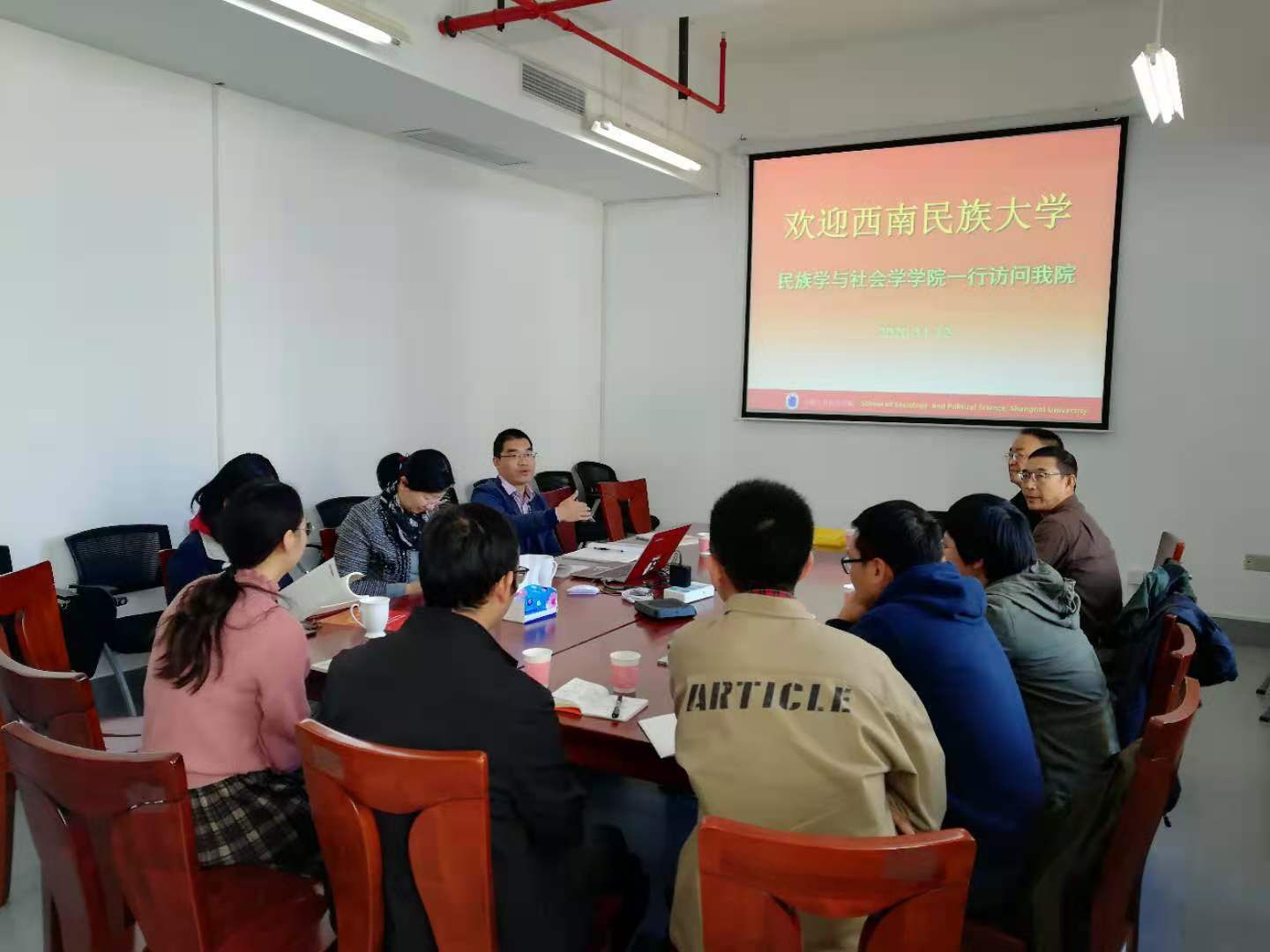11月10日,西南民族大学民族学与3044永利集团在特聘经理纳日碧力戈教授、范召全副经理率领下一行9名老师来访3044永利集团进行团队建设调研。公司经理张文红教授、党委书记沈艺、3044永利集团副经理、社会工作系主任杨锃教授、社会学系副系主任盛智明副教授、社会工作系实习督导陈彩霞老师和程金老师出席研讨。
