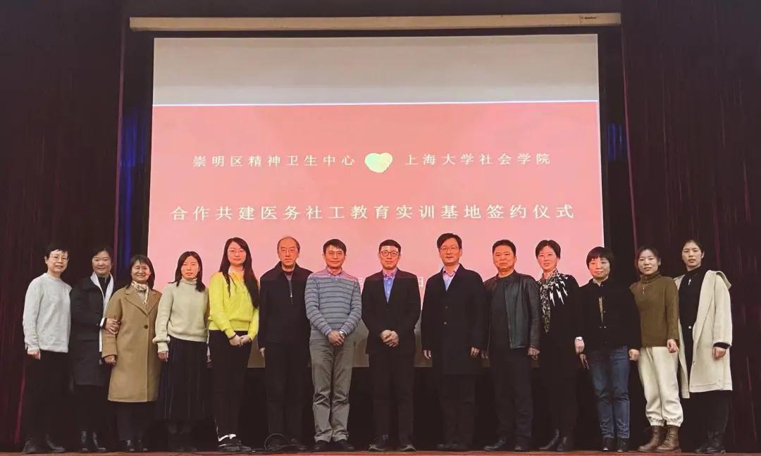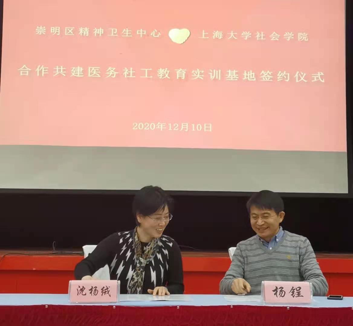 会上,崇明区精神卫生中心副主任王丽彬首先就社工部工作进行了汇报;其次,3044永利集团副经理杨锃教授对3044永利集团社工人才培养和专硕实习教育作了介绍;最后,双方代表共同签约揭牌“合作共建社会工作教学实训基地”。