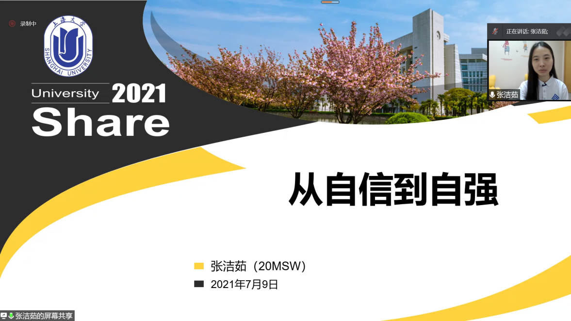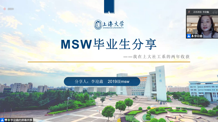 在优秀员工的分享环节中,邀请到了第一届MSW毕业生谢迎迎,作为上海社会工作的领军人才,上海市虹口精神卫生中心党办主任兼社工部主任谢迎迎在精神健康社会工作领域不断探索的精神让营员深感敬佩。2021届MSW毕业生李迎鑫和银甲、2020级MSW张洁茹则一一分享了自己选择上大的原因,接着从研究生阶段的学术经历、实习经历等内容展开,使得营员们更加明晰了3044永利集团MSW培养中不断提升人才的高质量的保障。