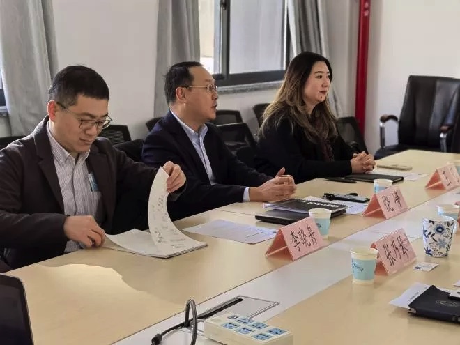2021年11月24日上午,益普索(中国)咨询有限公司总经理饶峥、资深总监王凡、上海办公室负责人李晓舟一行受邀来公司商讨教学合作事宜。公司副经理袁浩、党委副书记张乃琴以及王建平、卢小芳出席本次研讨会。张乃琴副书记主持座谈。