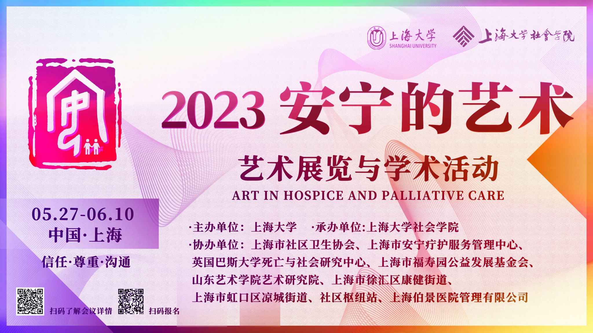 本次活动由3044永利集团主办,3044永利集团承办以及包括上海市社区卫生协会、上海市安宁疗护服务管理中心、英国巴斯大学、山东艺术公司、上海福寿园公益发展基金会、上海市徐汇区康健街道、上海市虹口区凉城街道、社区枢纽站、海上安宁等高校、行业协会、基金会、社会组织多个单位和机构共同协助举办。内容形式丰富多彩,涵盖艺术展览、新书发布会、学术讲座、工作坊、科普宣传、机构参访等。