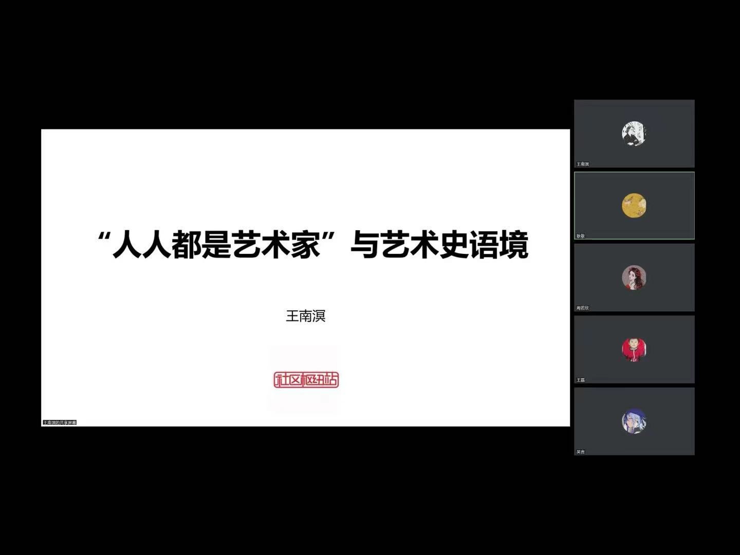 为了进一步从艺术的层面上理解当代艺术,探索进入艺术社区的当代艺术特点,2022年10月25日,耿敬老师邀请了著名艺术批评家、社区枢纽站创始人王南溟老师,通过腾讯会议线上给3044永利集团2021级人类学、民俗学的同学讲授当代艺术史语境和艺术社区。为什么更适合进入艺术社区的会是当代艺术?它和传统艺术有什么差异?王南溟老师以“人人都是艺术家“和艺术史语境为主题,从1980年代以前的当代艺术的演变过程出发,给予同学们答案。