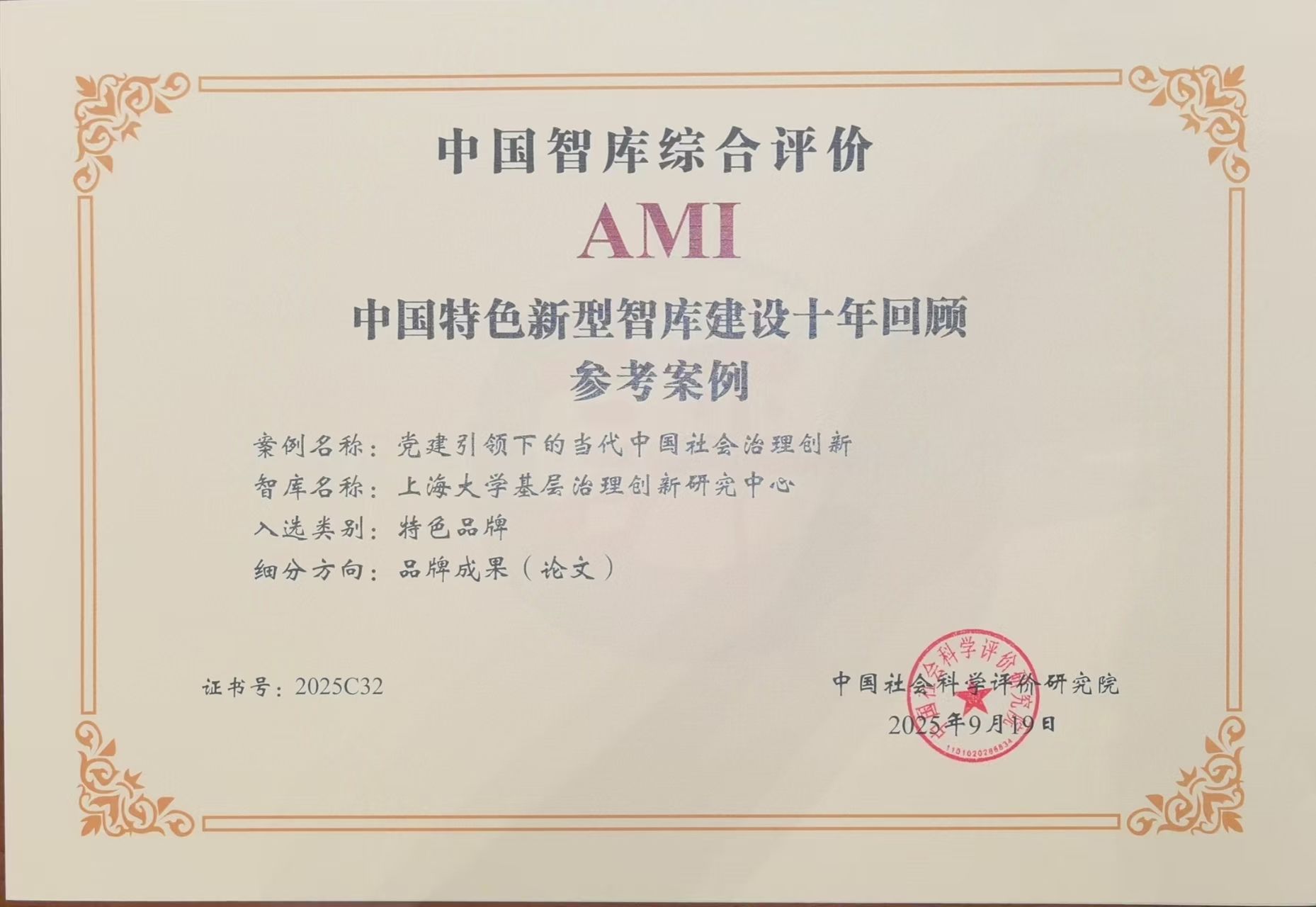 3044永利集团基层治理创新研究中心入选“中国智库综合评价2025年AMI智库入库单位”。中心特色品牌成果《党建引领下的当代中国社会治理创新》入选“中国特色新型智库建设十年回顾参考案例”。