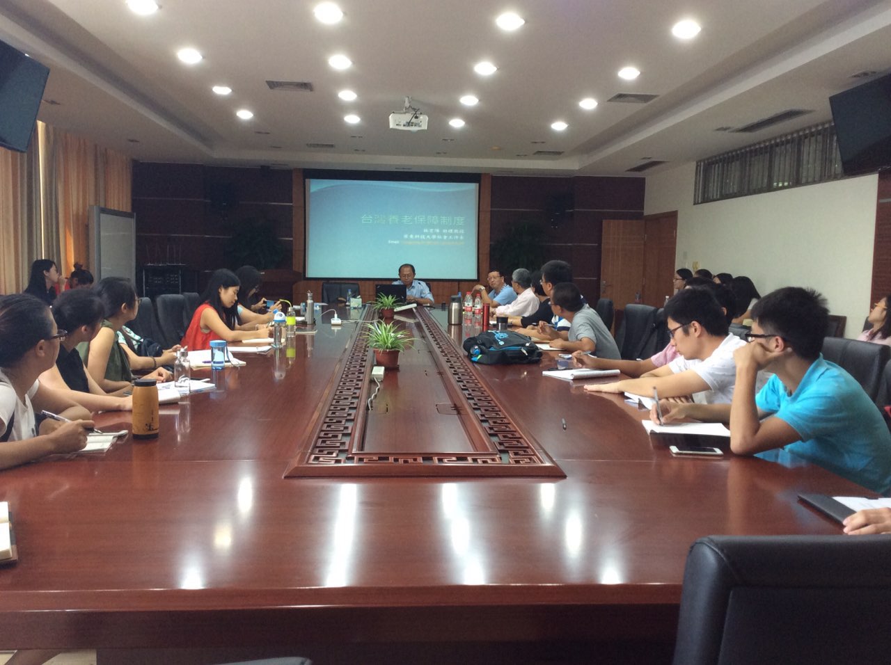 首先,范明林老师向同学们介绍了林宏阳老师,与同学们一道欢迎老师的到来。其次,林红阳老师从社会安全和社会历史文化的角度介绍社会养老保障制度组建的由来和必要性。结合实际的情况,他期望继续讨论关于跨职业类别年资累计议题保障制度、给付与提拨机制、老年之概念与部分退休制度、短工津贴与部失业制度。通过老师的讲述,我们不仅了解到台湾的养老保障有更进一步的了解,同时对于目前或者以后有志于做老年服务的社会工作专业的员工,有一定的价值和意义。