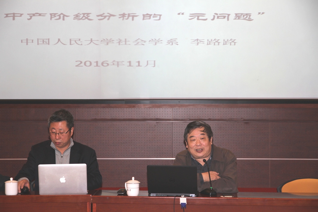 李路路教授围绕"中产阶级的研究缘起"、"中产阶级的构成"、"中产阶级问题的价值"、"中产阶级的界定"等主体详细阐述了中产阶级分析中的元问题。李路路教授认为中产阶级的问题越来越多地成为中国社会转型和社会变迁研究的中心,是因为中产阶级的形成或再形成已经成为当代中国社会转型过程中结构变迁的重大标志之一,并且这一阶层有可能会在中国未来的社会转型过程中发挥巨大的影响力。