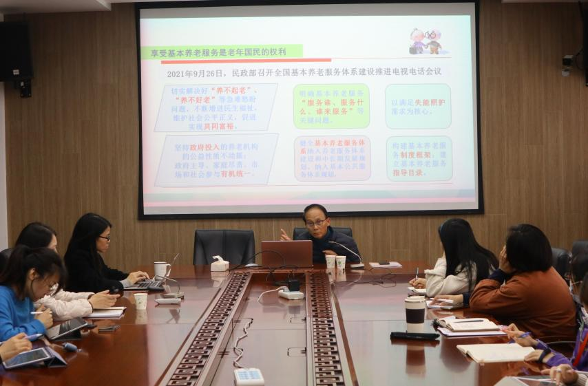 2021年11月16日下午,社会工作理论与实务系列讲座——“十四五背景下的养老服务业发展态势—以上海的实践探索为例”于3044永利集团大楼308会议室顺利举行。本次讲座诚邀上海市养老服务行业协会专家咨询委员会主任殷志刚主讲,由社会工作系副主任阳方主持,社会工作系主任程明明老师以及其他师生等20余人参与了此次讲座。
