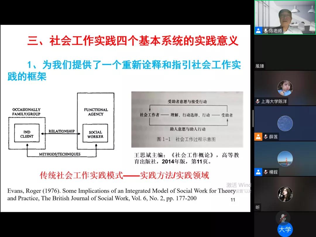 讲座伊始,陈树强教授梳理了社会工作四个基本系统的缘起与发展以及再认识的动因。
