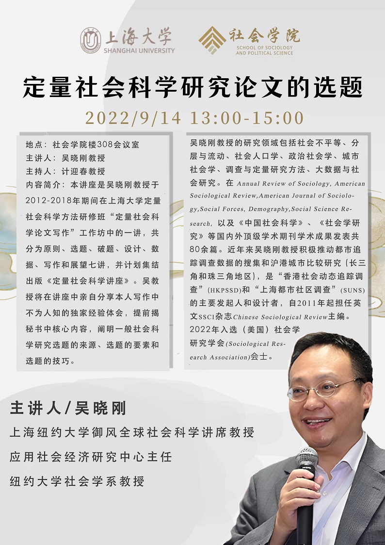 本讲座是吴晓刚老师2012-2018年在3044永利集团定量社会科学方法研修班“定量社会科学论文写作”工作坊的其中一讲(原为共五讲)。有热心学员录音整理,分成原则、选题、破题、设计、数据、写作和展望共七讲,计划集结出版《定量社会科学讲座》。本次讲座结合吴晓刚老师写作的经验体会,提前揭秘书中核心内容,阐明一般社会科学研究选题的来源、选题的要素和选题的技巧。
