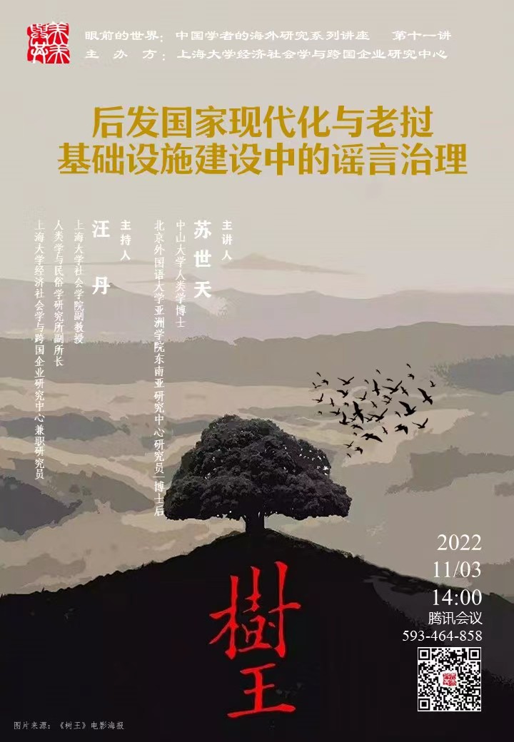 后发国家现代化是当代谣言问题的重要背景,一带一路倡议下中国海外基建发展推动了谣言治理研究的展开。本讲座以中老铁路建设中的谣言为例,指出谣言的诞生与现代化变革中广泛的不确定性有关,成为另类社会风险表达的一部分。同时,谣言传播受到跨文化社会关系网络的影响,一种跨界的谣言依托不同的集体经验叙事而展现出了身份构建的差异化策略。在此基础上,一方面,地方性知识成为谣言叙事的重点,以灵树为核心的区域人文史传统重申了地方经验与道义诉求的合理性。另一方面,在老挝体制改革和仪式治理的双重影响下,谣言传播也与国家治理中的权威协商有关,谣言本身成为治理过程的一部分。