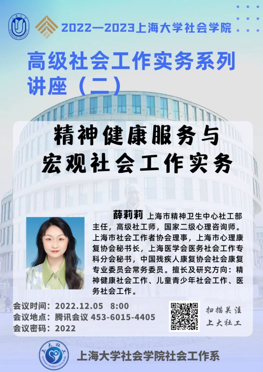 报告人 薛莉莉 (上海市精神卫生中心社工部) 报告时间(年月日) 2022年12月5日