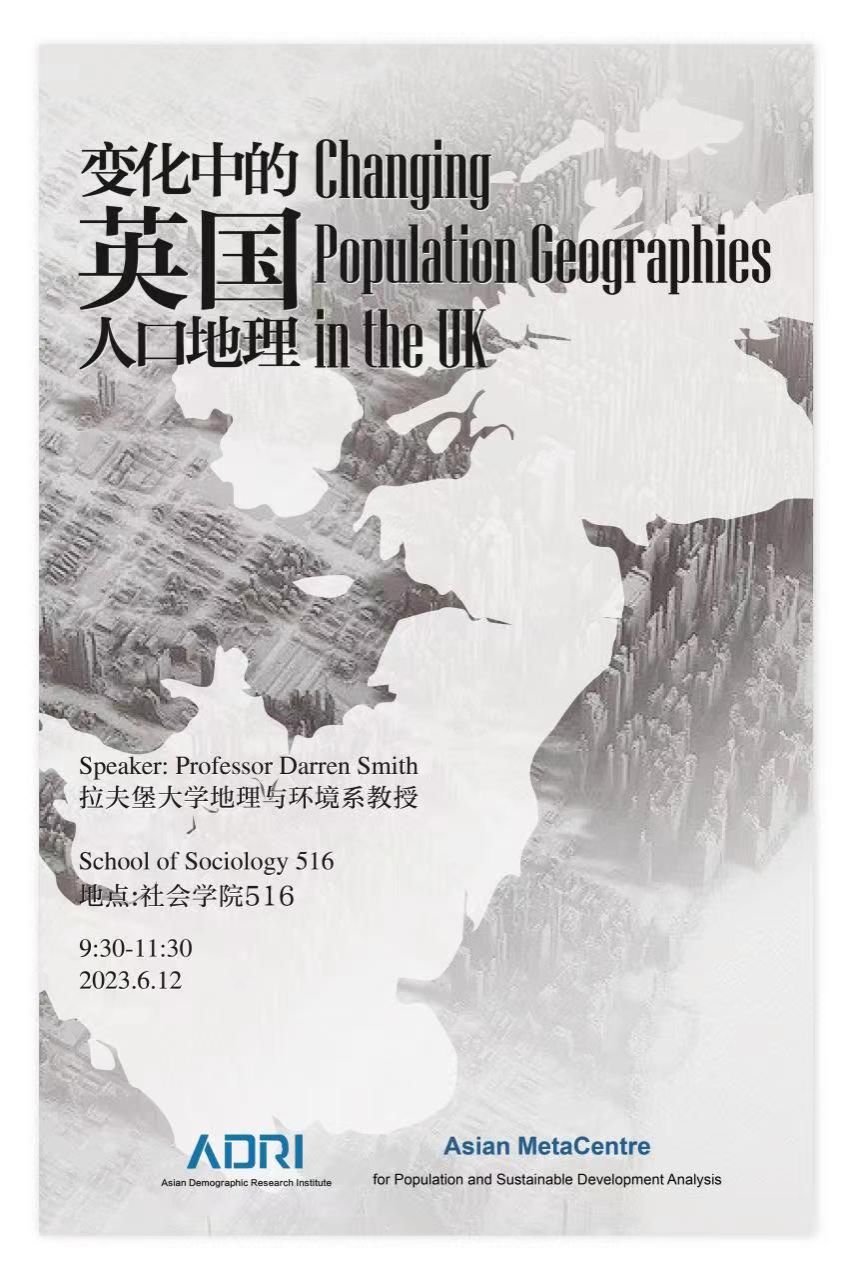 主讲人:Darren Smith,英国拉夫堡大学教授,英国社会科公司院士;国际人口地理学会组委会主席;英国经济与社会研究理事会(ESRC)项目评估委员会副主席,担任《Population Space and Place》等国际著名期刊主编;长期从事人口迁移等相关研究,研究项目被英国副首相办公室、英国学术院、英国经济与社会研究理事会等机构资助;学术成果先后发表于《Transactions of the Institute of British Geographers》《Dialogues in Human Geography》《Progress in Human Geography》《Journal of Rural Studies》《Urban Studies》等国际一流学术期刊。