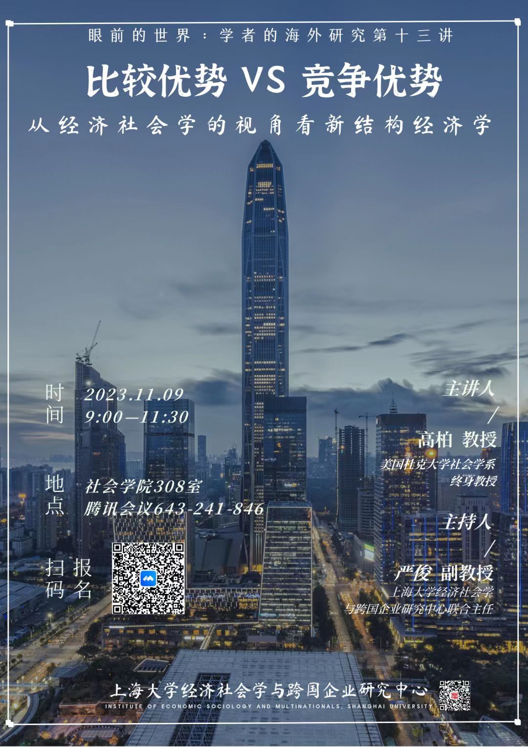 主讲人:高柏,杜克大学社会学系终身教授,美国普林斯顿大学获博士学位,曾经获得普林斯顿大学Marion Levy比较研究奖,以及Woodrow Wilson Fellow。他的研究分别两次受到美国社会科学委员会与日本国际交流基金的赞助。高柏曾经在日本东京大学社会科学研究所,一桥大学经济学系,横滨国立大学国际商学与法公司,东京经济大学,以及德国科隆马克斯-普朗克社会研究所任访问学者,并于2006年夏季在东京大学社会科学研究所担任客座教授,2010年夏季在日本明治大学政治经济学部担任客座教授。已出版专著包括《经济意识形态与日本产业政策——1931-1965年的发展主义》《日本经济的悖论——繁荣与停滞的制度性根源》《西方社会科学理论与日本研究》《中巴经济走廊的政治经济学分析》《中国高铁创新体系研究》《中欧班列:国家建设与市场建设》等,主编“当代经济社会学丛书”,译介美国经济社会学制度学派的文献。