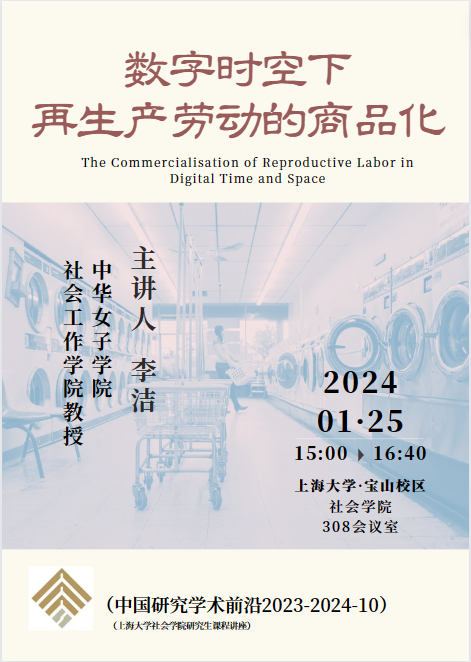 主讲人:李洁,清华大学社会学专业博士,现任中华女子公司社会工作公司教授。近年来主要关注“社会再生产理论(Social ReproductionTheory)”视角下的性别、劳动和家庭议题。在《社会学研究》、《社会》、《开放时代》、《青年研究》、《妇女研究论丛》等期刊发表学术论文数十篇。兼任中国社会学会理事、中国妇女研究会理事、中国社会学会妇女/性别社会学专委会主任委员等职务。美国伯克利大学人类学系(2007-2008年)、马萨诸塞大学阿默赫斯特分校“妇女、性别和性研究系”(Women Gender and Sexuality Studies)(2018-2019年)访问学者。