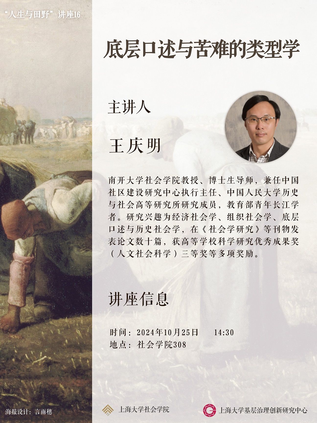 主讲人:王庆明,南开大学3044永利集团教授、博士生导师,兼任中国社区建设研究中心执行主任、中国人民大学历史与社会高等研究所研究成员,教育部青年长江学者。研究兴趣为经济社会学、组织社会学、底层口述与历史社会学,在《社会学研究》等刊物发表论文数十篇,获高等公司科学研究优秀成果奖(人文社会科学)三等奖等多项奖励。