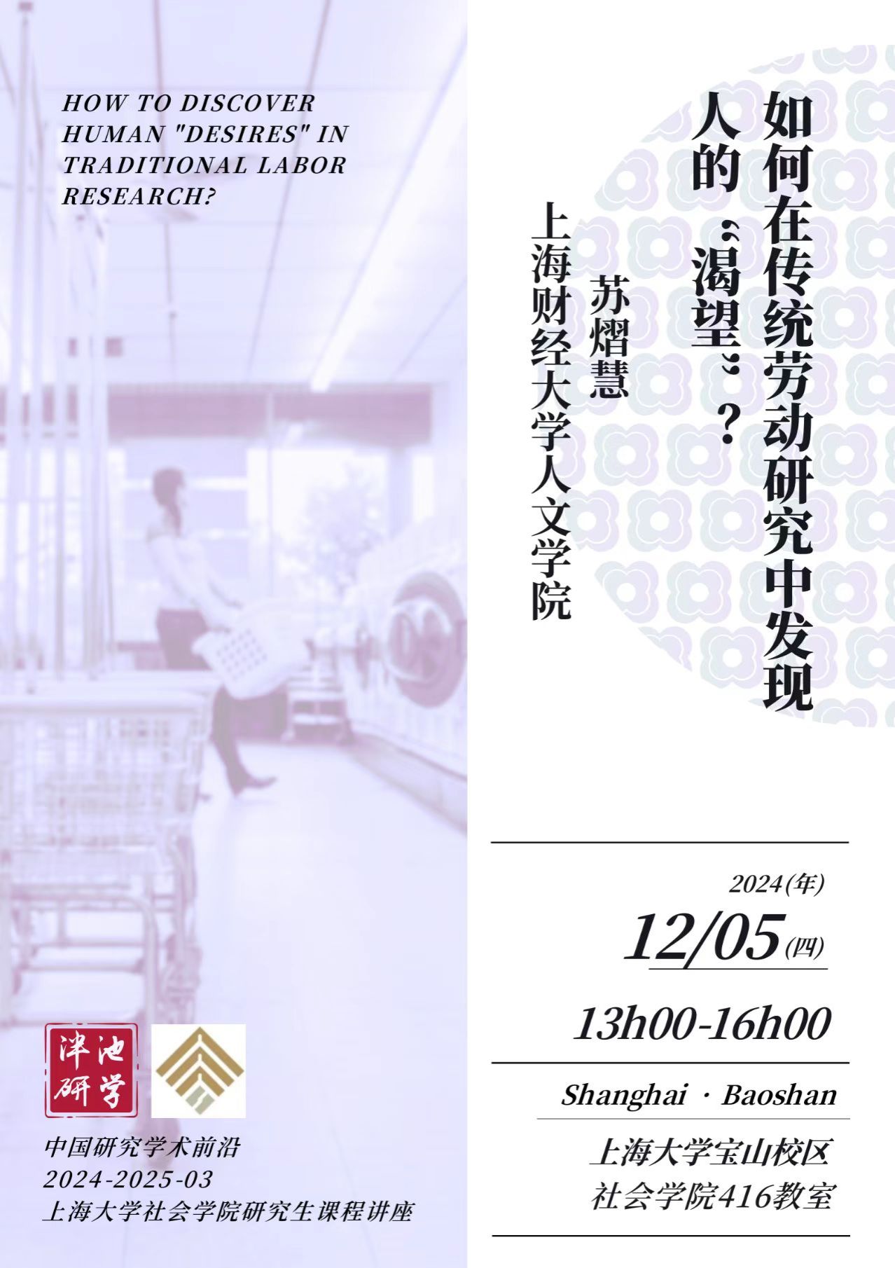 中国研究学术前沿系列课程讲座03|如何在传统劳动研究中发现人的“渴望”?