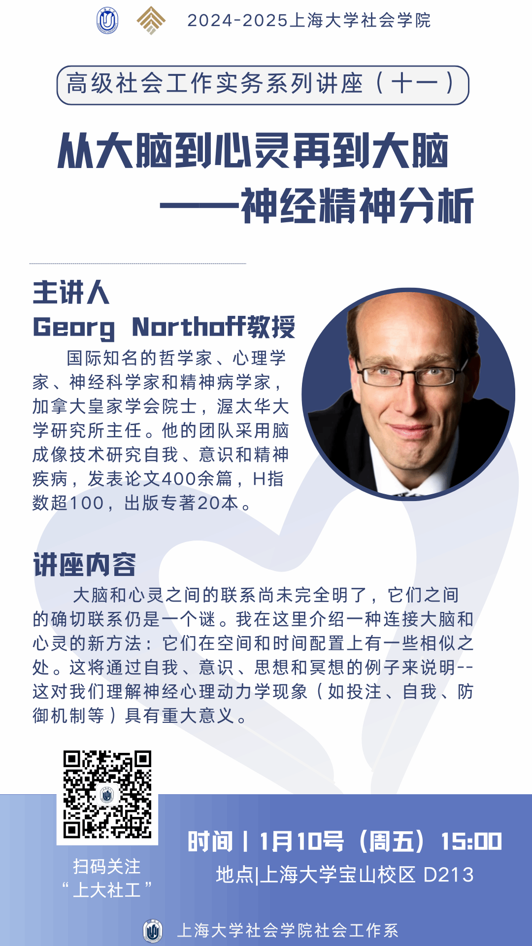 报告人 Georg Northoff (加拿大皇家学会院士) 报告时间(年月日) 2025年1月10日