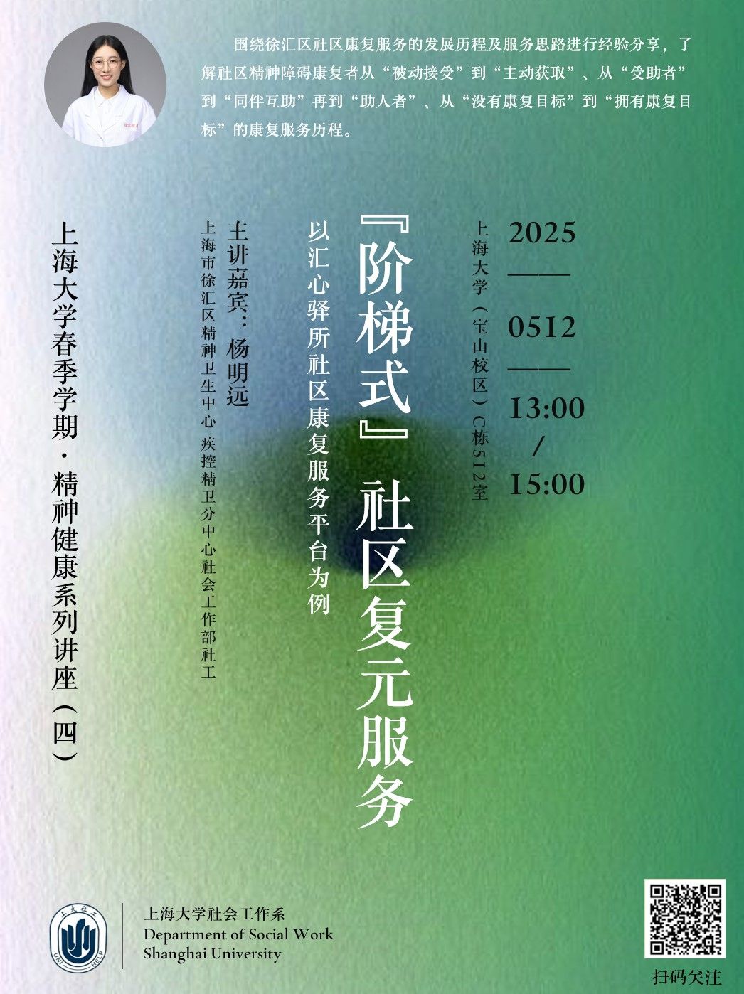 2025年第22讲总第894讲(社会工作系:精神健康系列讲座四)