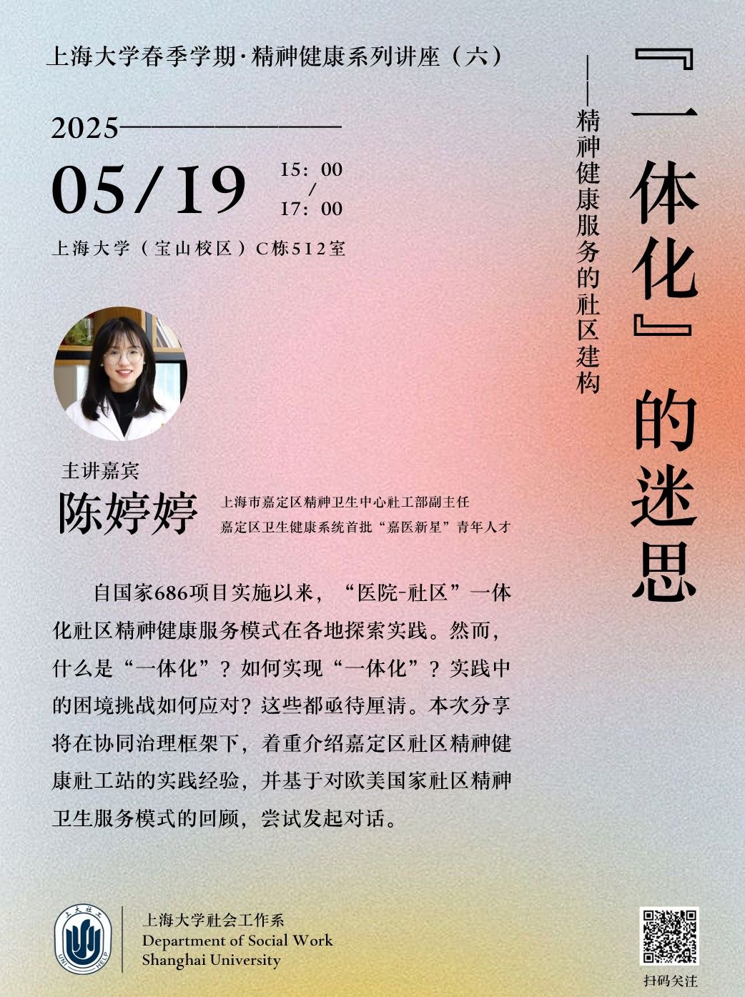 2025年第26讲总第898讲(社会工作系:精神健康系列讲座六)