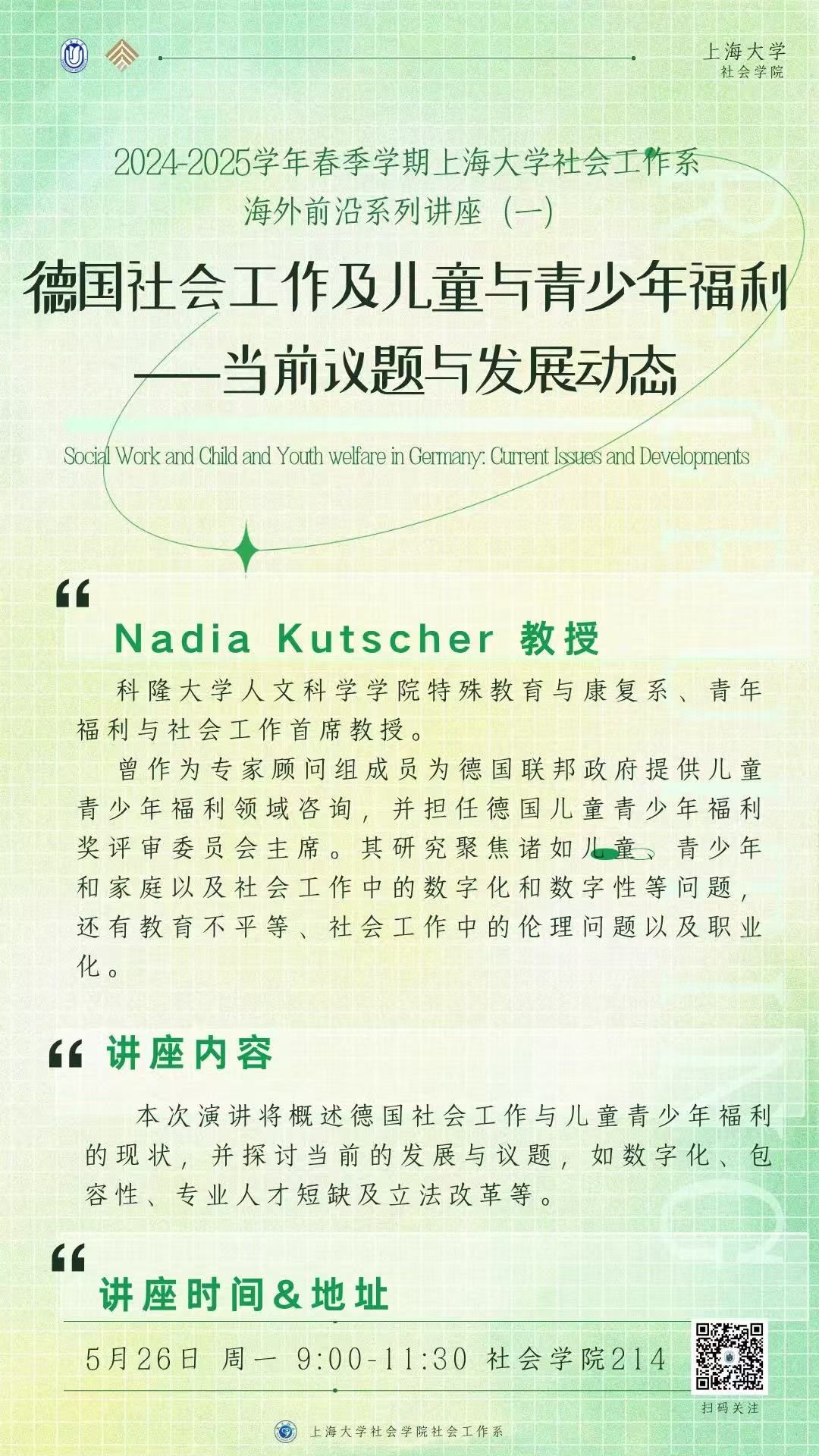 报告人 Nadia Kutscher (德国科隆大学教授) 报告时间(年月日) 2025年5月26日