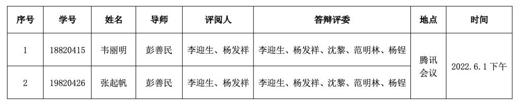 韦丽明、张起帆博士研究生学位论文答辩安排