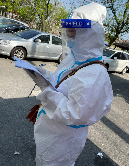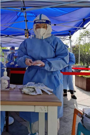 一直都说医生穿大白很辛苦,真正尝试过之后才知道到底多难受。天气渐渐热了,穿着大白真的很闷。我们小区不大,一次核酸基本上两个半小时,每次都是干着穿进大白,脱掉大白全身湿透。同时为了减轻医生的工作压力,提高核酸效率,我在拆棉签的同时还要提醒居民蹲下、抬头、张嘴、戴口罩、不碰医生、不摸桌子等,一边还要记着这是这个管子的第几个人,做了多少管子,及时和医生汇报进度。而抗原相关的工作就要简单很多,发放的时候只要不计错数,问题就不是很大;每天早上提醒大家及时在群里拍照上传结果并统计汇报至居委会,除了个别居民可能遗忘或者睡过头,大家都很配合我们志愿者的工作。而面对不理解、唱反调的居民,也只能放平心态,耐心劝导,避免发生冲突。