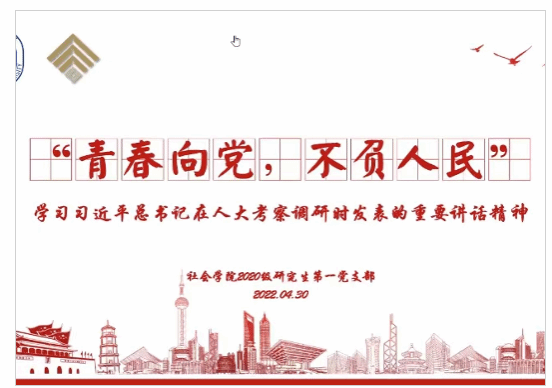 在五四青年节即将到来之际,中共中央总书记、国家主席、中央军委主席习近平于4月25日上午来到中国人民大学考察调研。总书记多次强调广大青年们要勇于砥砺奋斗,练就过硬本领,锤炼品德修为,勉励广大青年们在青春的赛道上跑出当代青年的最好成绩。为进一步学习贯彻习近平总书记考察中国人民大学重要讲话精神,公司研究生各党支部围绕总书记的讲话精神,以线上方式开展组织生活会,号召广大青年党员们牢记时代使命,在最好的青春岁月里立大志,做实事,坚定为中华民族谋复兴的信念。