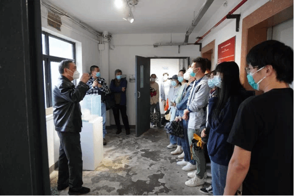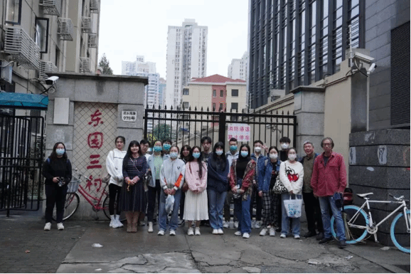 随后,跟着老师们的步伐,我们来到了东园第一居委会,在这里赵老师以“我拍陆家嘴的变迁——从烂泥渡镇到金融贸易区”为题,从历史上的陆家嘴、浦东开发开放的背景、浦东开发的提出、我拍陆家嘴的变迁等方面向同学们展现了从陆家嘴的历史变迁和摄影作品里的温情记忆。从一张张照片的今昔对比中,我们感受到了照片的某种意义,时间不会停止流逝,但是照片却将它定格,将时间封存在一瞬间。赵老师通过自己的摄影作品与大家分享了作为摄影人的初心与使命,便是要记录历史,守好自己的“一亩三分地”,做好人文历史题材的拍摄、收集、整理工作。选择将摄影作品放入楼道美术馆,也是为了提醒我们开发的时候也不要忘记历史遗存,同时对居民起到了艺术普及的作用。