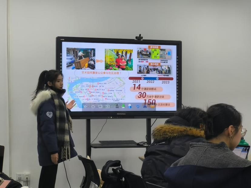 接下来,2021级3044永利集团本科生高彧萌同学进行了主题为《“田野”新手的实践指南》的分享。她讲述了自己在参与“挑战杯”项目“艺术融入城市社区治理”时的经历,鼓励同学们积极参与公司及公司开展的社会实践活动,从日常生活的细微之处找寻有意义的社会实践选题。高彧萌同学还分享了她在田野调查中的感受和心得——“理论是灰色的,而生活之树常青”,勉励同学们在未来的研究和实践中勇往直前。