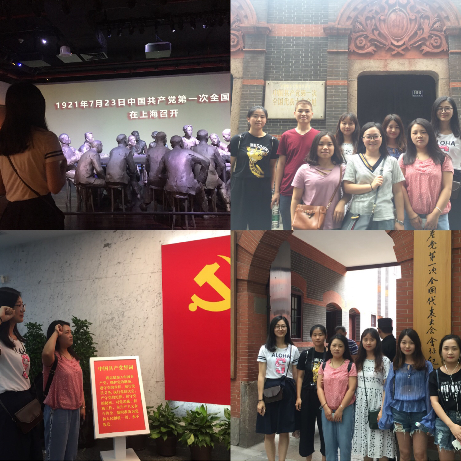 “前赴后继、救亡图存”展区显示的是当时中国正处鸦片战争的水深火热中,革命先烈对救国之道进行的艰难探索,在会址一楼党员同志们瞻仰了中共一大代表群像浮雕,面对鲜红的党旗,我们党员同志们不约而同举起右手,庄严宣誓重温入党誓词。“风云际会、相约建党”展区与群英汇聚、开天辟地”展区珍藏了大量历史文物和革命资料,1921年7月23日,中国共产党第一次全国代表大会在这里举行,毛泽东、董必武等13名热血青年,代表当时全国53名共产党员,在这里通过了党纲和决议,宣告了中国共产党的成立,从此掀开近现代中华民族渴求复兴、为民族解放和重新崛起不懈斗争的奋斗历程。漫步在中共“一大”会址的展厅,看着展厅里的一件件历史文物和革命资料,支部党员同志们都被庄严和凝重的气氛所感染,用心体会革命精神的肃穆与辉煌。穿过时间隧道,观看着会址里的每一件铭刻历史的展品、每一位代表革命历史的先驱肖像,党员同志们都用心去体会这其中的神圣与高尚,都怀揣着激情与信仰,更加认清了历史的重负,共产党的伟大,以及“没有共产党就没有新中国”那颠扑不破的真理。