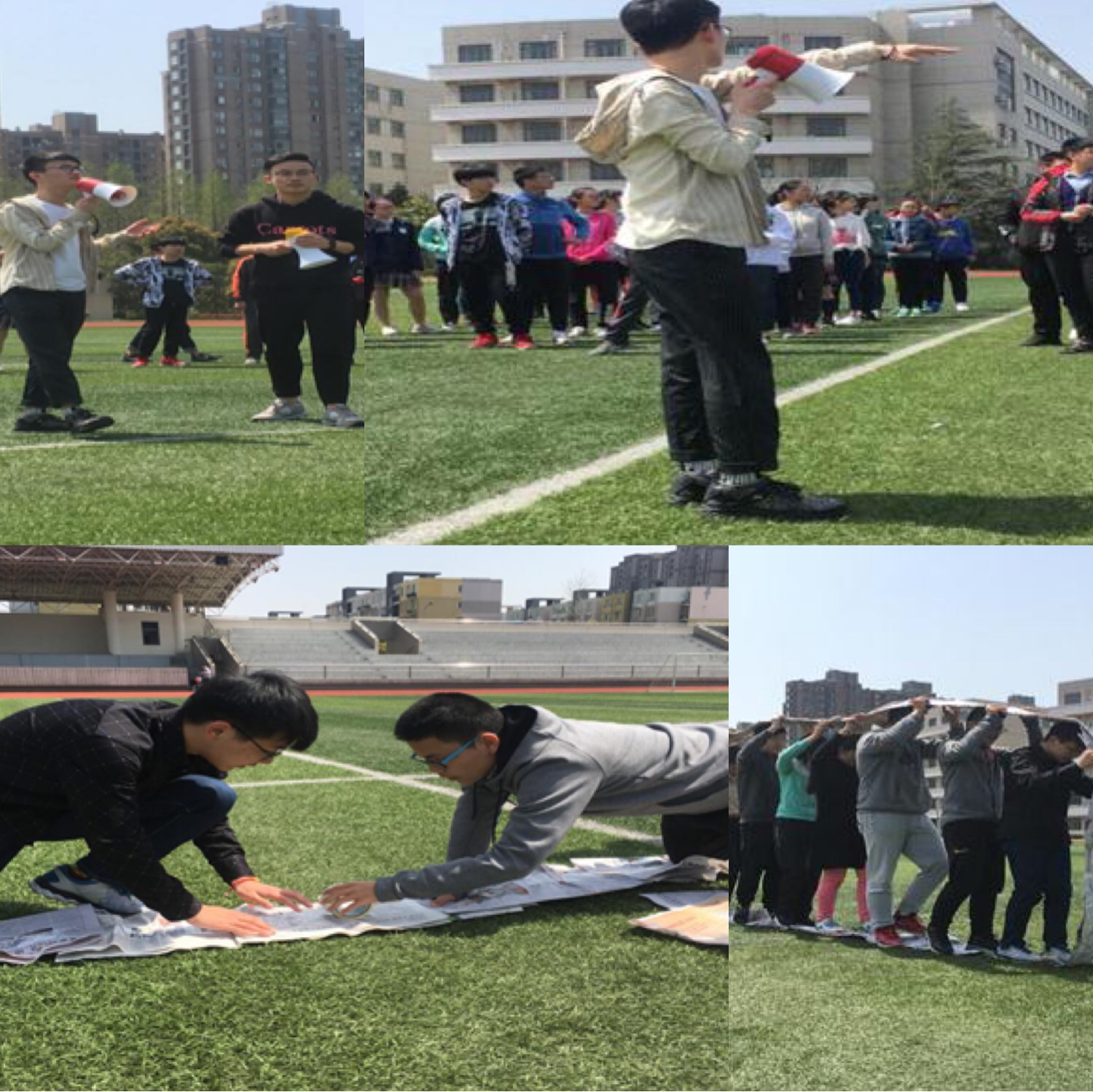<div style="LINE-HEIGHT: 150%; TEXT-INDENT: 20.75pt; MARGIN: auto auto 11.5pt 21.25pt"><span style="LINE-HEIGHT: 150%; COLOR: rgb(0,0,0); FONT-SIZE: 10.5pt">在正式开始素拓活动比赛前,因为参与的同学们彼此都来自于不同的公司,相对陌生,从破败游戏开始,先开始了热身游戏“今天我是几个人来的”让同学们开始放松身心,调整好状态,逐渐慢慢的熟悉了活动,周围的人也开始熟络起来,从而投入到今天正式的游戏—“无敌风火轮”:同学们以数字“1、2、3、4”为分组单位,数字为1代表第一组,依次类推,共分为四个小组,用十多张报纸首尾相接,拼成一个能容得下所有人的圆环,然后从操场的一边滚动到另一边,最先到达终点者获胜。</span></div>