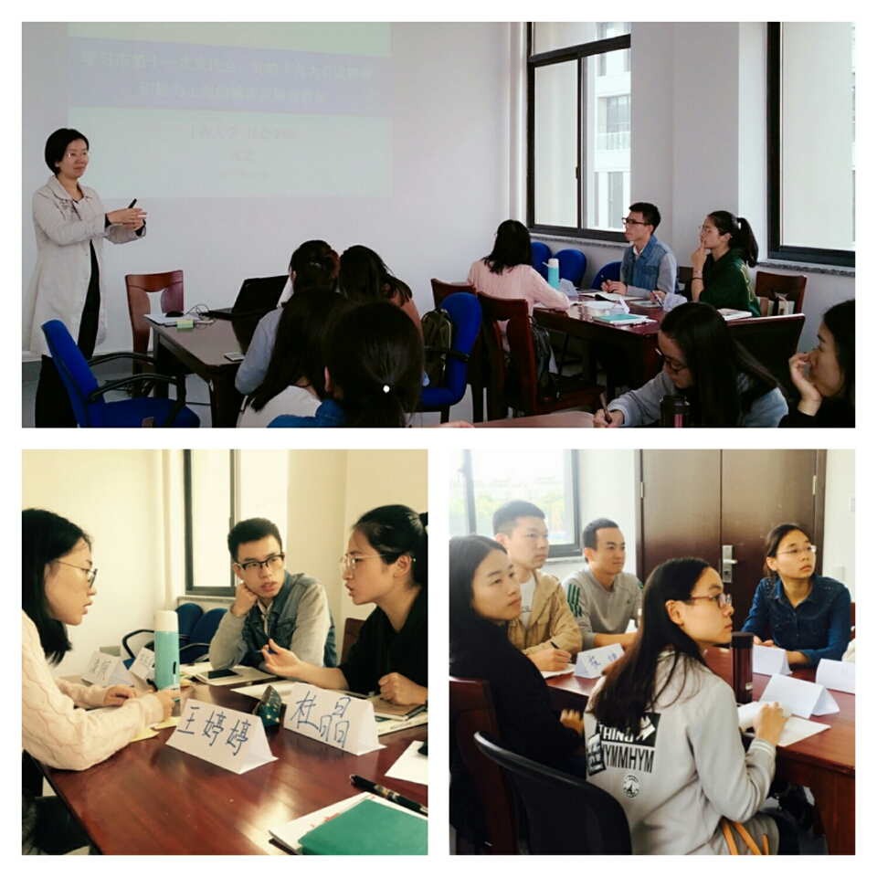 党课伊始,沈艺老师结合图片和视频,向在座的学员们介绍了上海市第十一次党代会的内容。上海市第十一次党代会提出要大力实施创新驱动发展战略,加快科技创新中心建设。以全球视野、国际标准推进张江综合性国家科学中心建设,特别强调创新的重要性。会议也提到了中国参与国际性竞争的研发实力显著增强,研发经费投入仅次于美国,位居第二。上海若想持续稳定发展,就定要抓住创新二字。随后,沈艺老师向学员们简明扼要地介绍了十九大会议内容和精神。着重解读了我国当前主要矛盾:人民日益增长的美好生活需要和不平衡不充分的发展之间的矛盾。接着,沈老师引导同学们以小组讨论的形式举例说明我们认为美好生活需要是什么、为什么有这个需要以及该如何去解决。四个小组都积极讨论并依次介绍教育、医疗和养老方面的美好需要。此外,沈艺老师还重点强调了十九大的主题:不忘初心,牢记使命,高举中国特色社会主义伟大旗帜,决胜全面建成小康社会,夺取新时代中国特色社会主义伟大胜利,为实现中华民族伟大复兴的中国梦不懈奋斗。告诫我们在以后自己成长的道路上定要“不忘初心,牢记使命”,不要轻易忘记自己的初心。最后,沈艺老师也引导同学们将十九大报告中的内容与所学的专业进行结合,积极展开思考。例如针对十九大报告中提到的“加强社会心理服务体系建设”,希望学员们能积极主动学习最新的理论和政策,充分发挥自己的专业优势,为加强社会心理服务体系建设添砖加瓦
