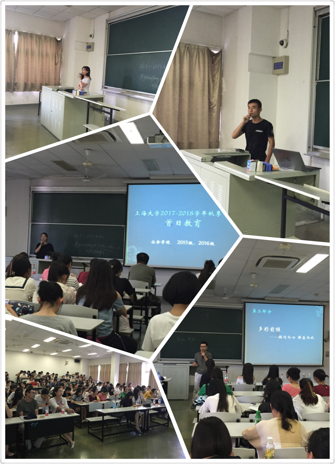 <div style="TEXT-INDENT: 21pt">9月10日下午三点,2015级与2016级全体本科生的首次见面令BJ203教室座无虚席。社会1501班班导师庞保庆老师,社会1601班班导师纪莺莺老师,社工1501班、社工1601班班导师程金老师也亲临现场,陪伴同学们共同迎接新学期的到来。作为首日教育的主持人——2015级、2016级辅导员刘璐老师首先对本次活动的内容进行了简单的介绍,本次首日教育共分为四个部分:</div>